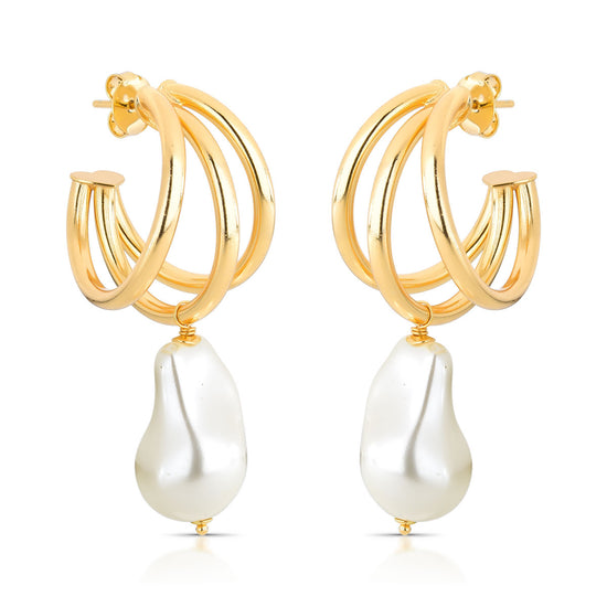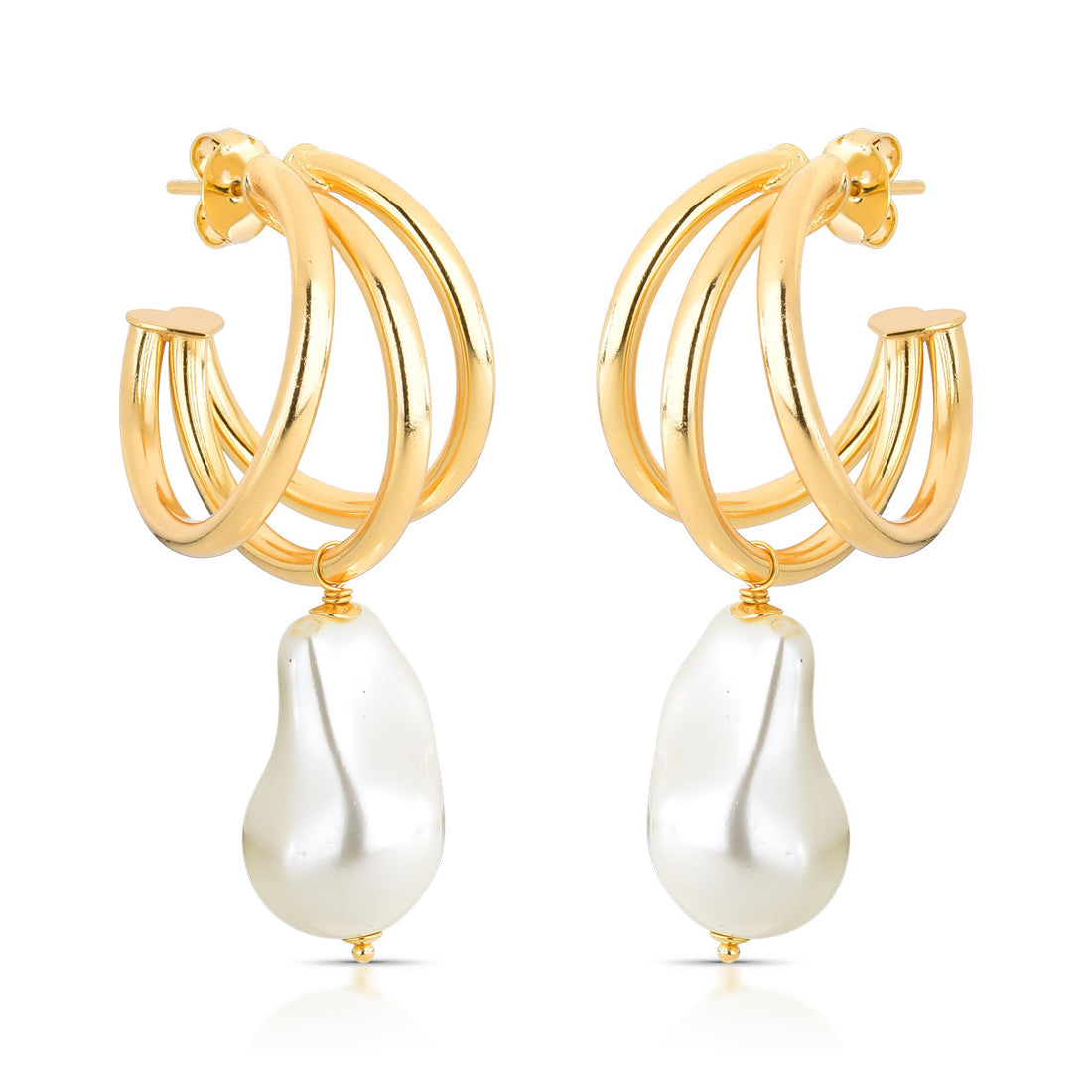 Produzido com banho de ouro 18k, o acabamento impecável reflete o brilho delicado do metal e a pureza da pérola, criando um equilíbrio perfeito entre sofisticação e estilo. Com 6 cm de altura, o modelo confere movimento e leveza, destacando o rosto com naturalidade.