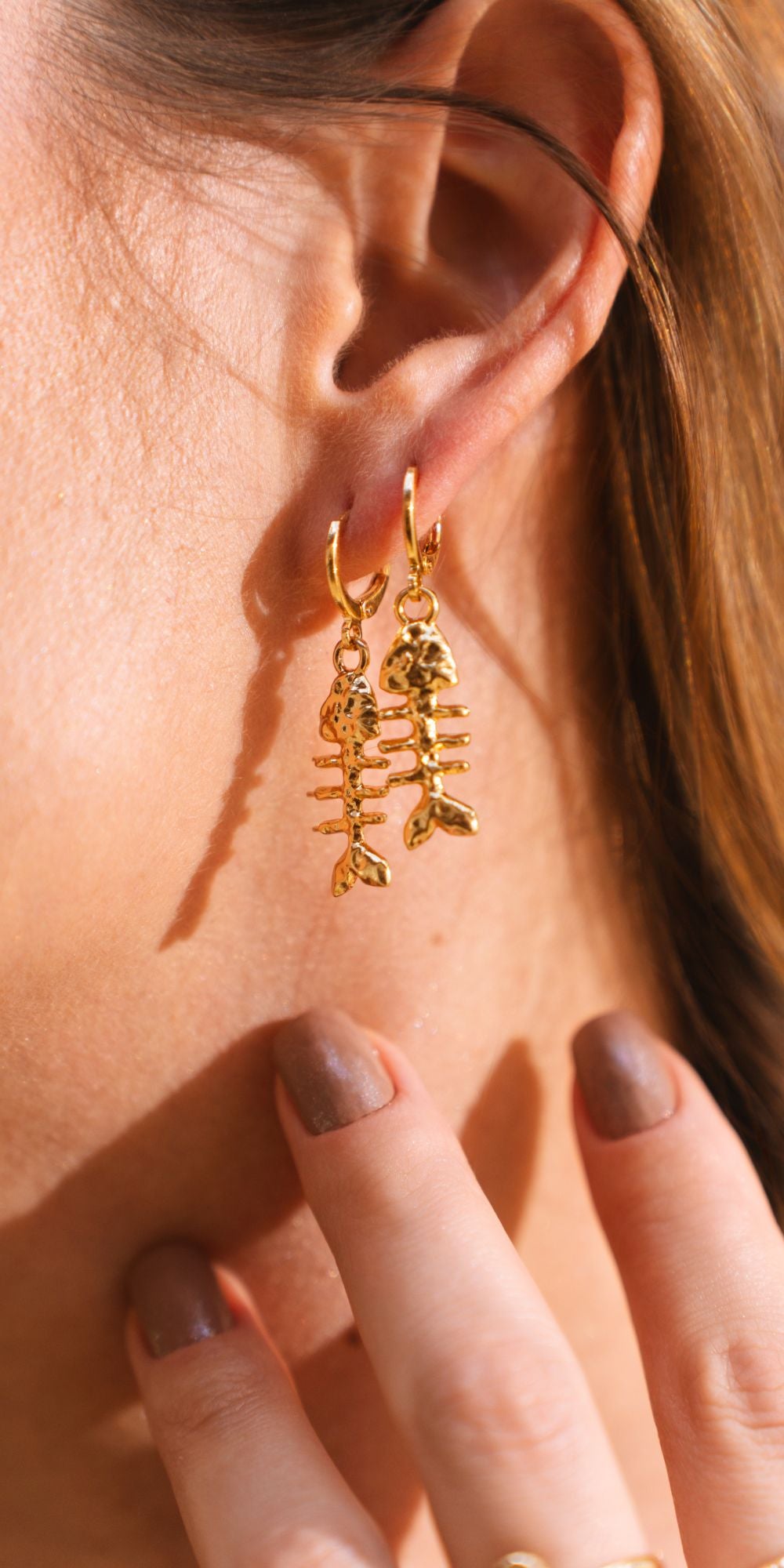 O Brinco Eva combina delicadeza artística e sofisticação moderna. Seu design em argola com pingente de peixe estilizado expressa movimento e fluidez, traduzindo a leveza em forma de joia.