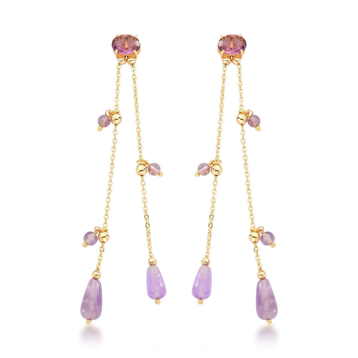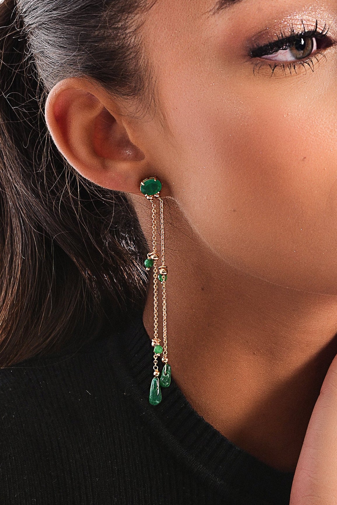 Cada versão — em granada, jade verde, ametista ou rutilo — carrega o charme das pedras naturais, irradiando cor e personalidade com sutileza. O banho de ouro 18k adiciona brilho refinado e durabilidade, enquanto o design hipoalergênico garante conforto durante o uso.
