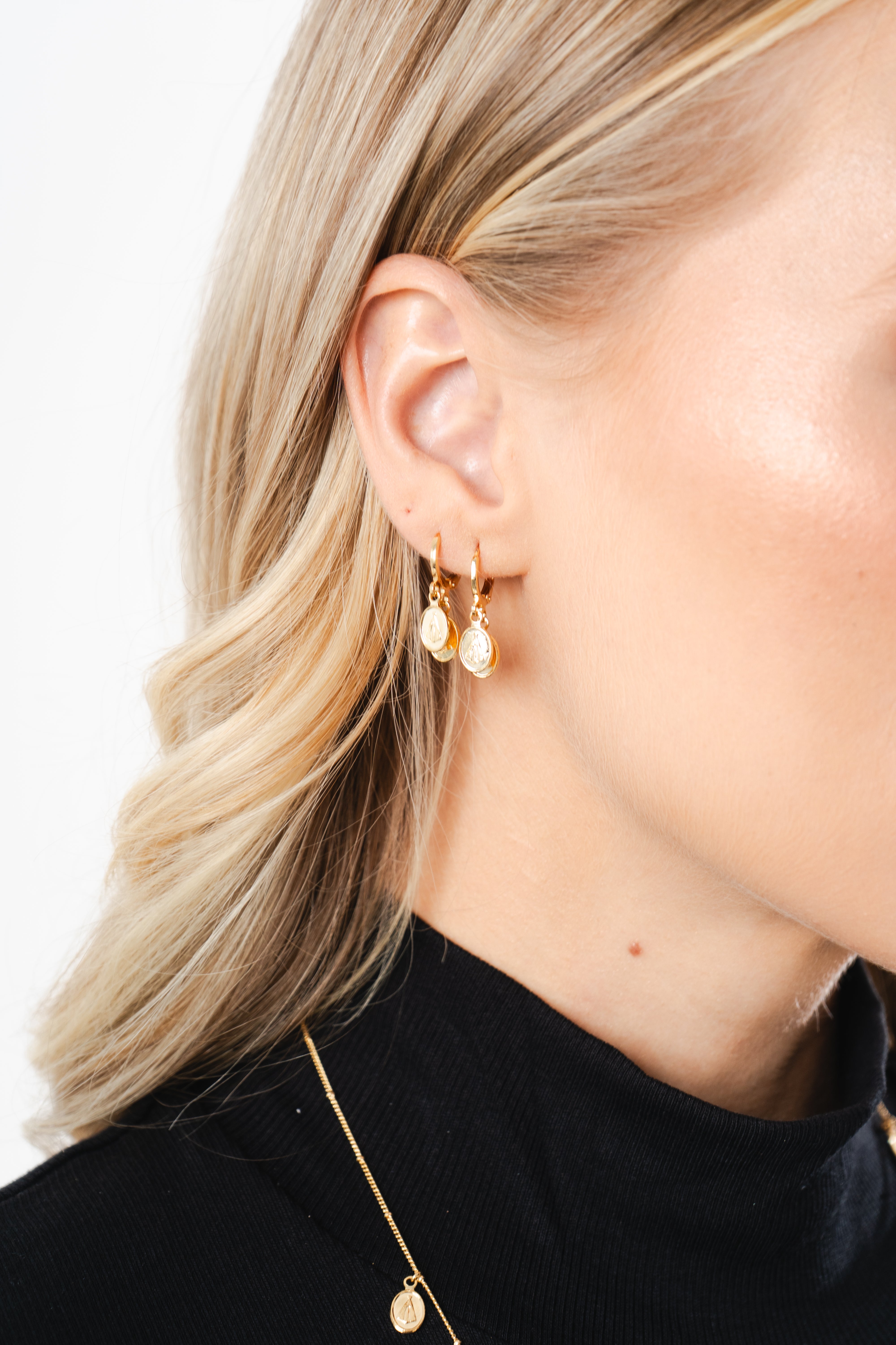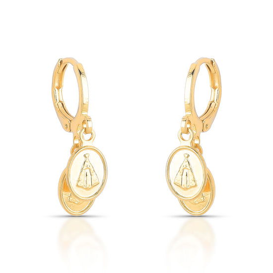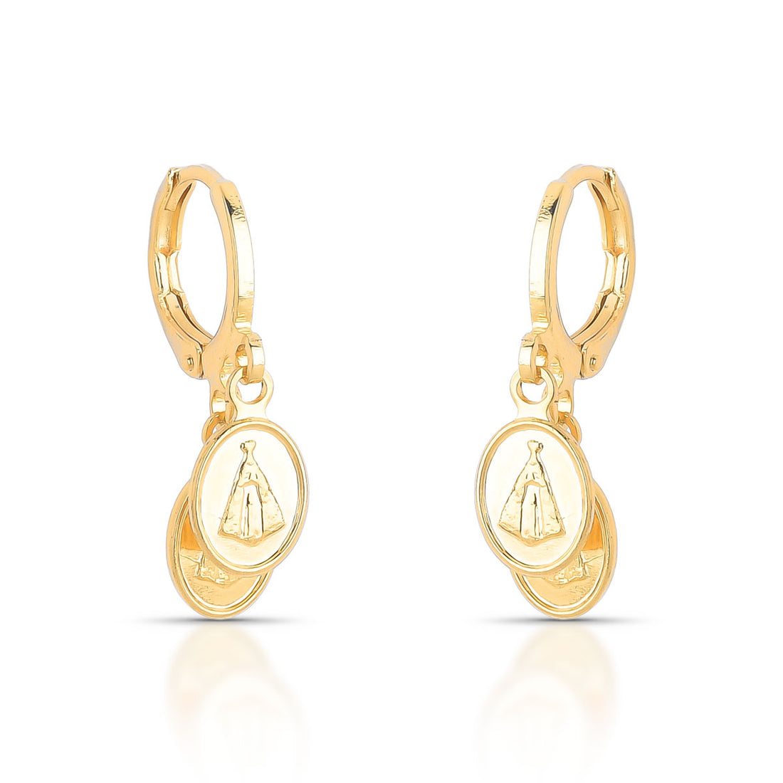 Brinco de argola com medalhas de Nossa Senhora Aparecida