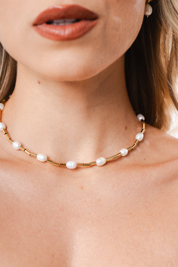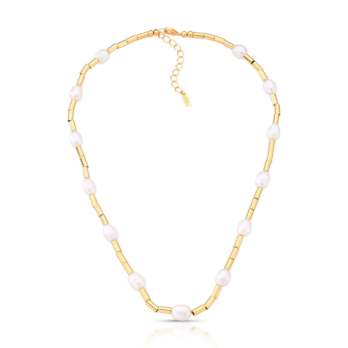 Colar de pérolas de água doce e canutilhos com banho de ouro 18k amarelo