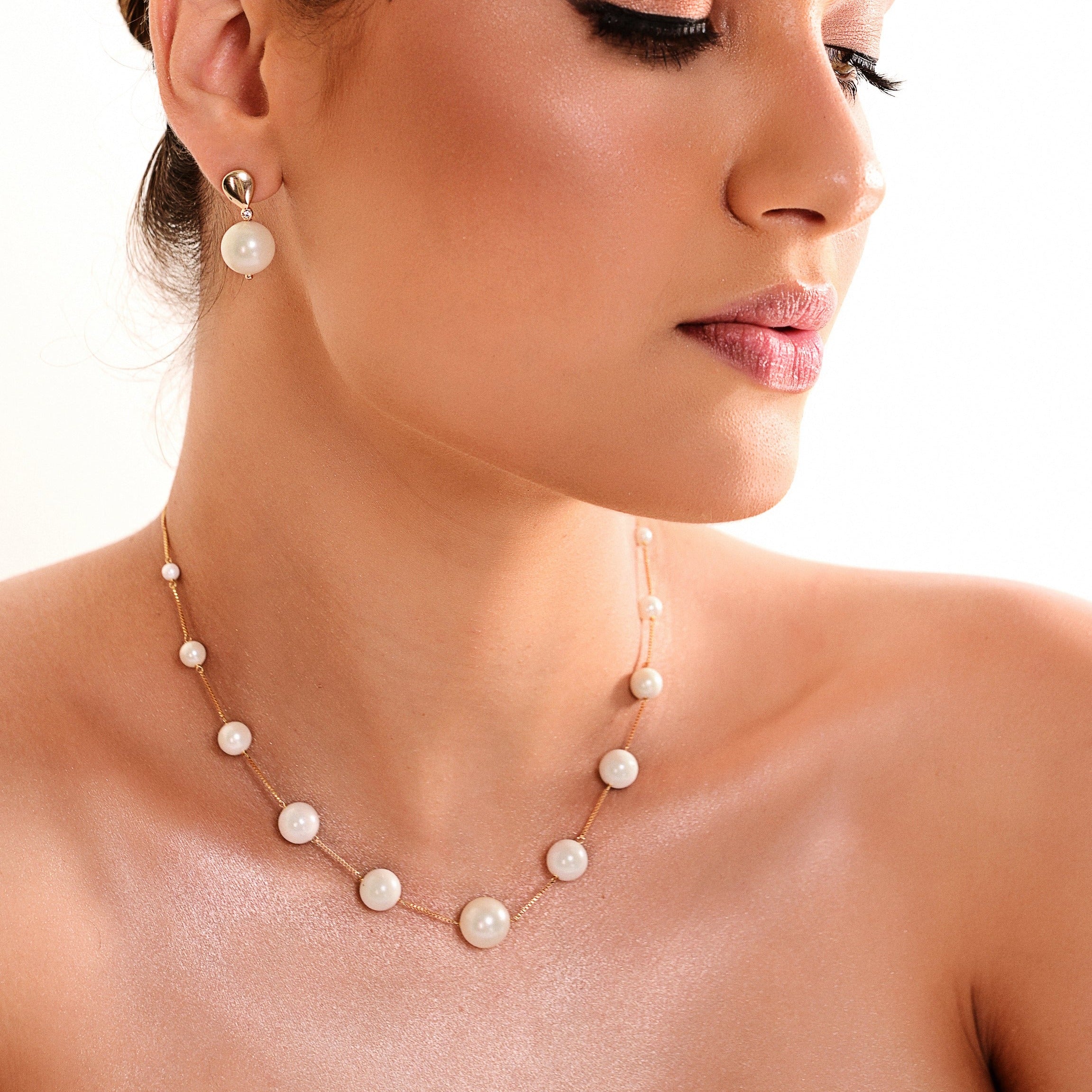 O Colar Ema possui pérolas em degradê e elegante corrente veneziana de tamanho ajustável em nosso banho de ouro amarelo 18k. Adicione sofisticação e luxo a qualquer visual