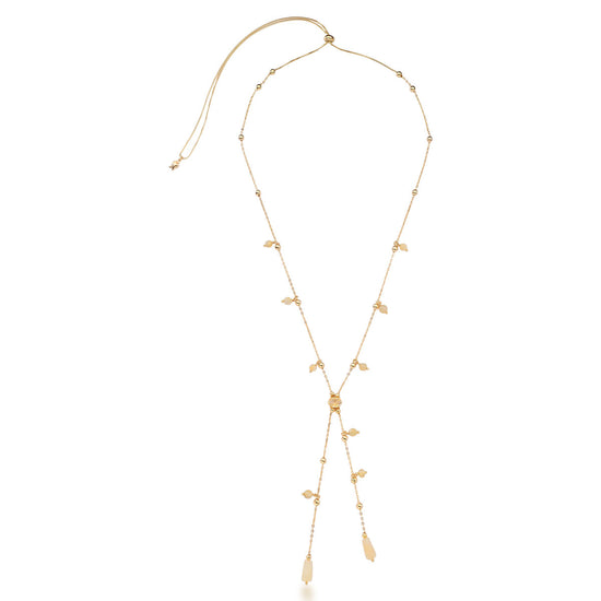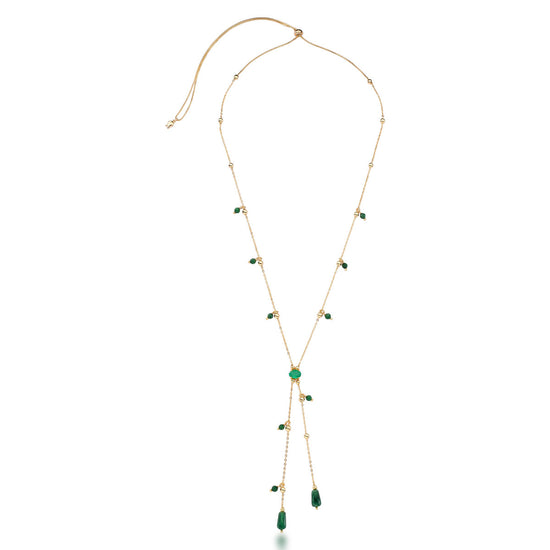 Este colar estilo "gravatinha" é feito com pedras jade e possui nosso luxuoso banho de ouro amarelo 18k. Adicione um toque de exclusividade a qualquer visual com o Colar Georgia