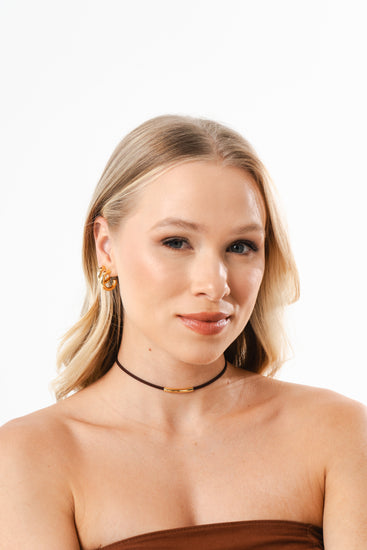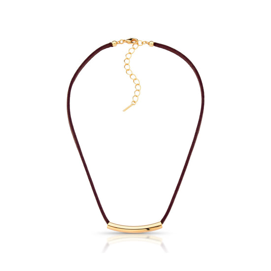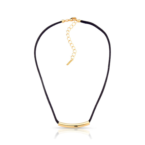 Lindo colar de camurça e tubo no banho de ouro 18k