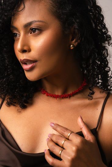 Colar de pedras coral, natural. Acabamento com banho de ouro amarelo 18k