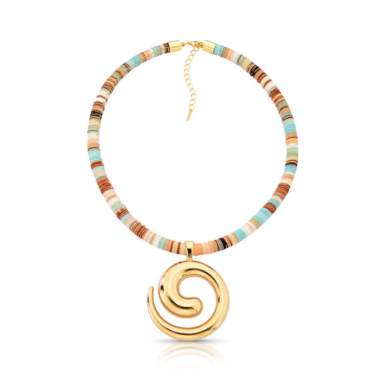 O Colar Susi é a tradução do design contemporâneo em sua forma mais leve e sofisticada. Com cordão de tecido em um mix de cores elegante, a peça traz um pingente espiral banhado a ouro 18k, que confere movimento e brilho na medida certa.