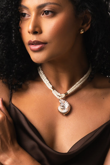 O Colar Thalita é uma expressão de elegância natural com um toque de frescor contemporâneo. Seu design artesanal em cordão de São Francisco une textura e sofisticação, enquanto a concha em resina adiciona um charme tropical refinado.