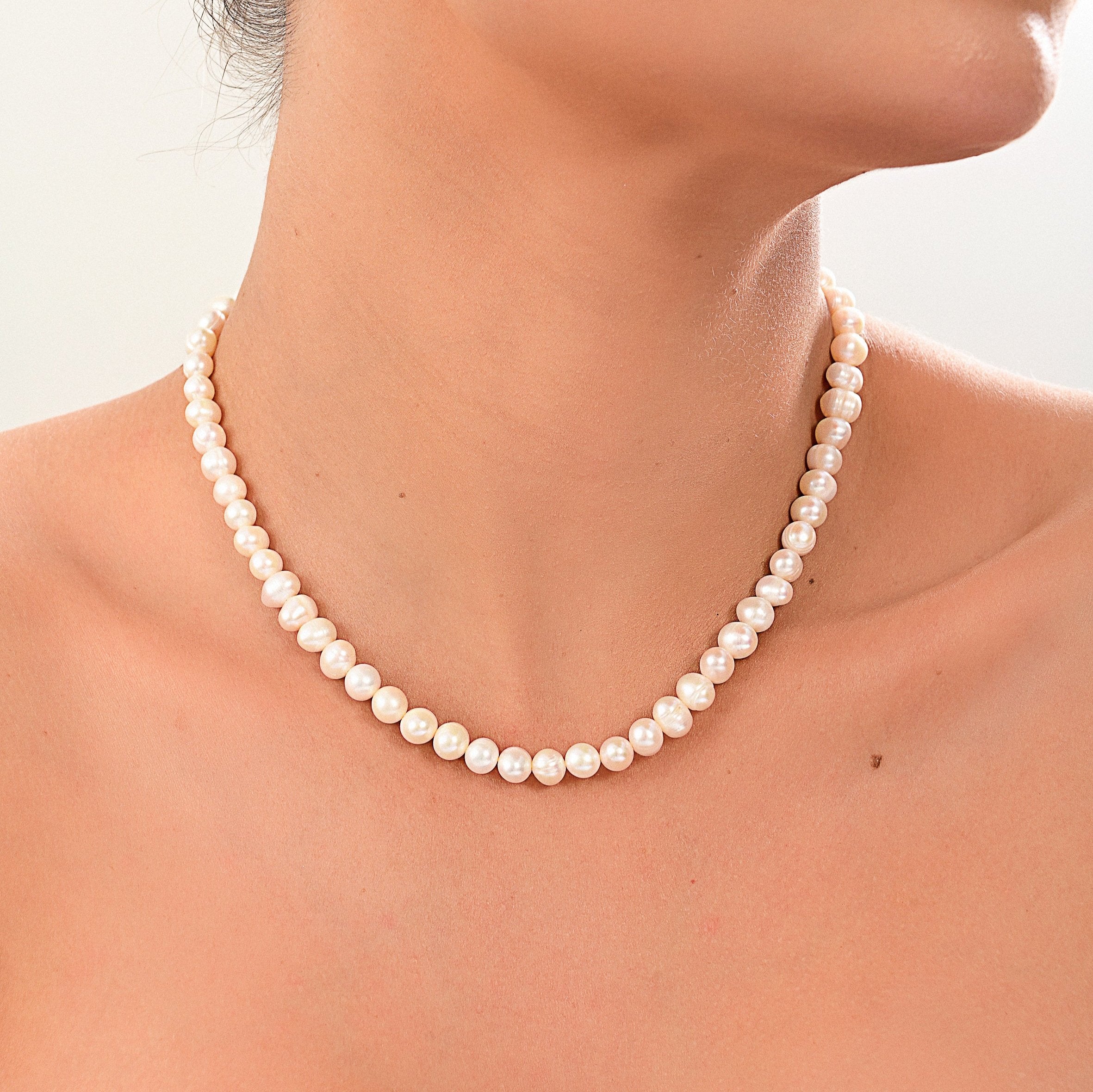 Leve a elegância com você com o Colar Vanessa. Feito com pérolas de água doce e componentes em nosso banho de ouro amarelo 18k, esse colar adiciona um toque de sofisticação a qualquer visual
