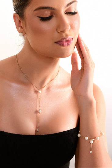 Delicadeza e sofisticação se unem no Conjunto Esme, criado para mulheres que valorizam a beleza atemporal das pérolas em harmonia com o brilho dourado. Cada peça foi pensada para compor um visual completo, com elegância equilibrada e versatilidade única.