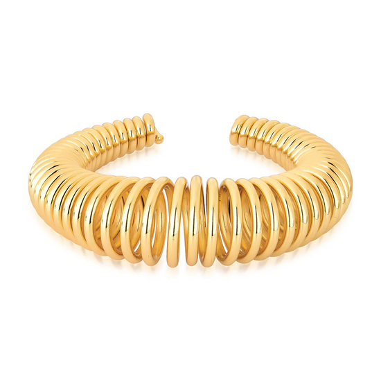 A Pulseira Ayla é a tradução perfeita do luxo moderno. Seu design maxi e flexível, em estilo mola bracelete, envolve o pulso com elegância e atitude, adicionando um toque de sofisticação contemporânea a qualquer produção.